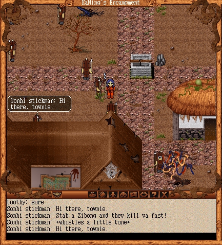 The KaMing Encampment is a historic camp/battleground that has now been overgrown with marsh-lands. Originally, the Sonhi people were starving to death at these campgrounds. Buya and Kugnae collected food stuffs to feed them. The nomadic Sonhi never truly trusted the towns folk and their guards were always muttering disparaging remarks. If anyone attacked a guard for his rude comments, all guards in the area would converge in defense. This tense situation resulted in many conflicts culminating with a somewhat tentative alliance between the Zibong and the Sonhi. The Zibong moved into the Sonhi's Haunted House where many lost their lives.